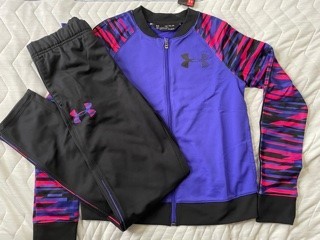 - 新品★アンダーアーマー★160/YXL★ガールズ★ジャージ★上下セット★パンツ★長袖★パープル・きれいゼブラ模様★長ズボン★上着