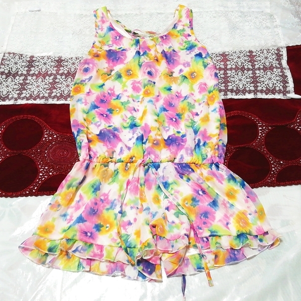 > ピンク緑白シフォンキュロットノースリーブネグリジェナイトウェア Pink green white chiffon sleeveless negligee nightwear