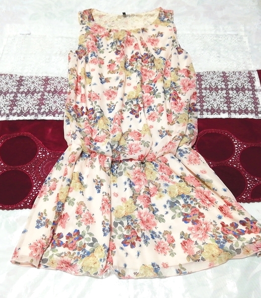 > ピンク青緑シフォンノースリーブ ネグリジェ ナイトウェア ミニワンピース Pink blue green chiffon sleeveless negligee nightwear dress