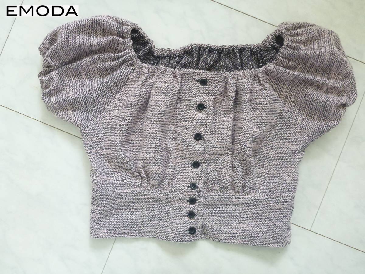 - 美品 EMODA エモダ ★ ピンク×黒ツイード素材 ショート丈 トップス M