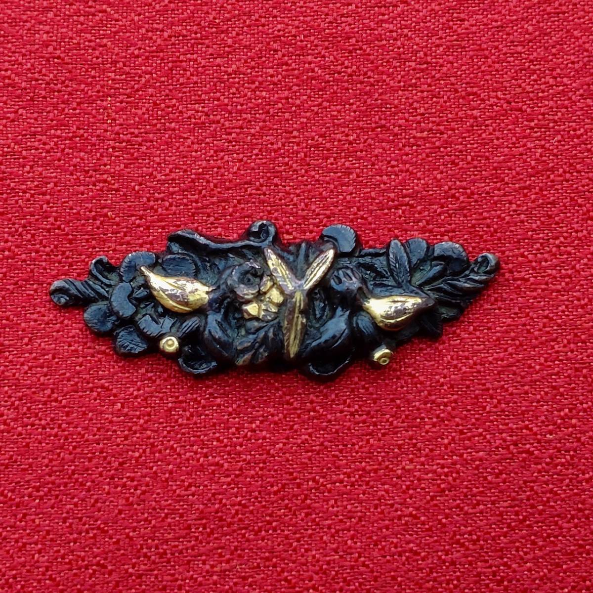 > 前金具 時代 金具 縁金 真鍮製 花 日本刀の部品 胴乱 煙草入れ 煙管入れ 古物 骨董 42㎜ 【2395】