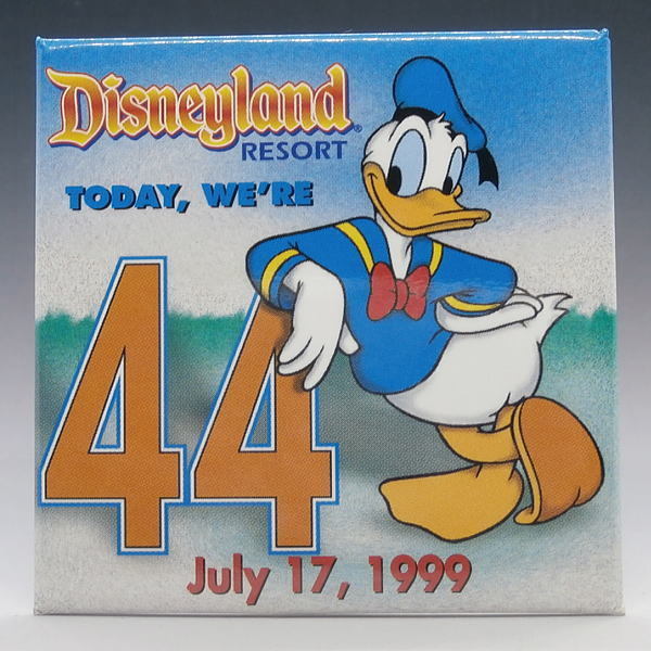 - ディズニー ドナルド 缶バッジタイプバッジ DLR44周年記念 ディズニーランド USA 1999年7月17日