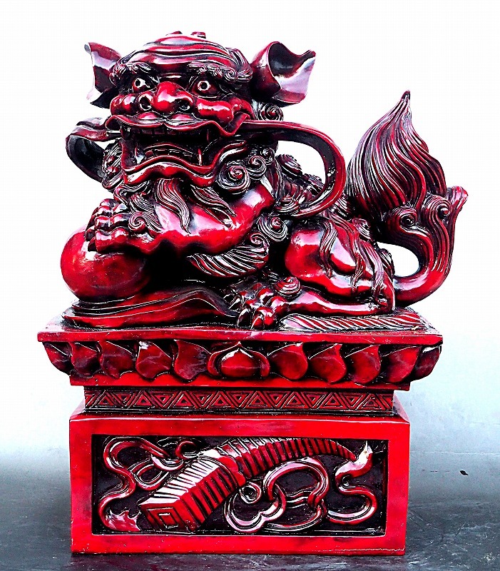- 玉乗り獅子 木彫風 置物 大迫力 魔除け 中古品 高さ43cm