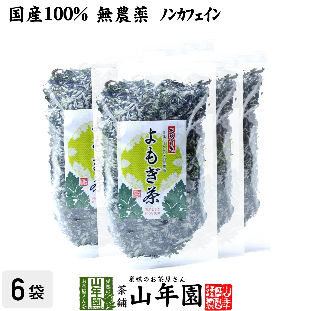 - 健康茶 国産100% よもぎ茶 宮崎県産または徳島県産 無農薬 ノンカフェイン 70g×6袋セット 送料無料