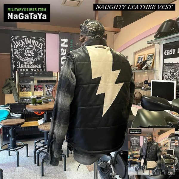 > Vin&Age ビン&エッジ レザー ナーティーベスト 40 Lサイズ VLJ6 エイジング加工 バッファローレザー仕様 Thunde サンダー アイボリー