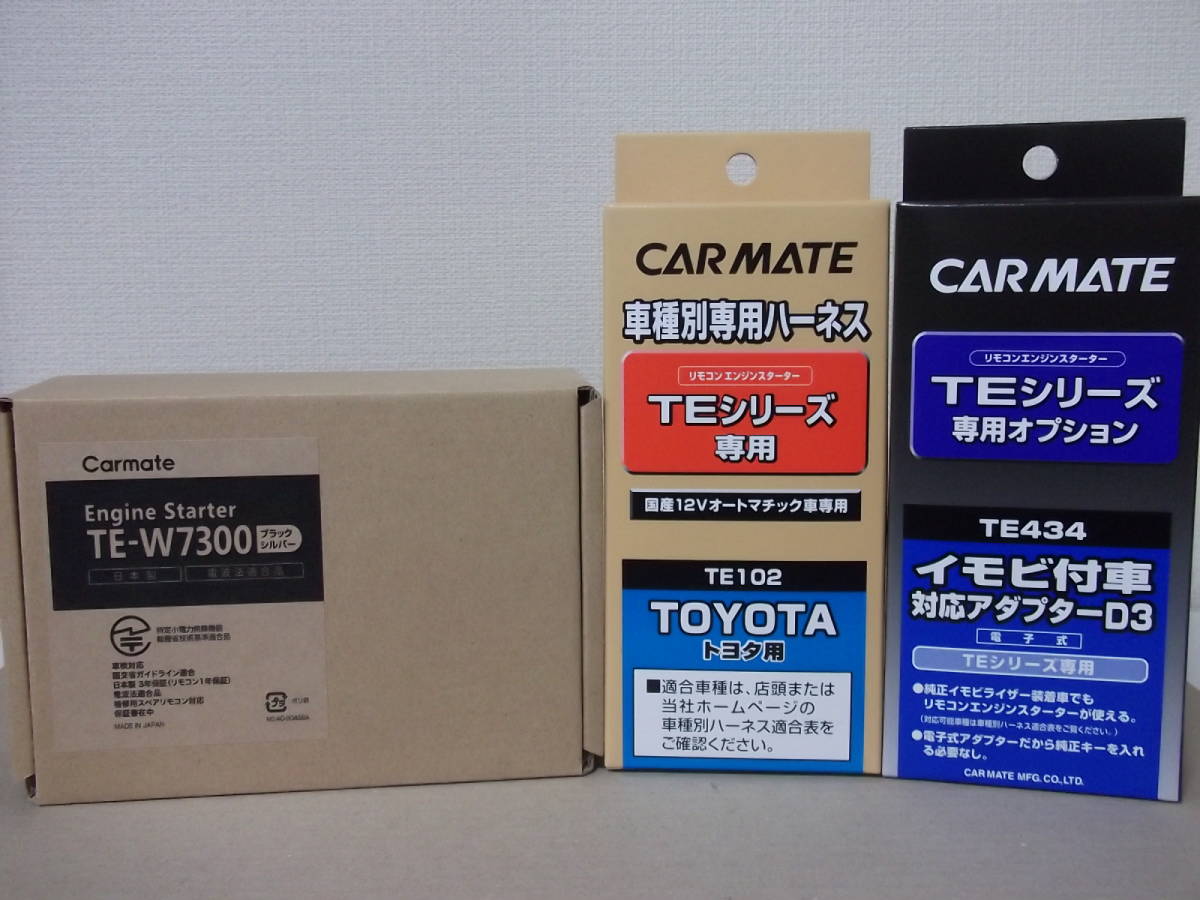 > 【新品・在庫有】カーメイトTE-W7300+TE102+TE434 トヨタ bB QNC2#系 H22.7~H28.11 スマートキー車用リモコンエンジンスターターSET