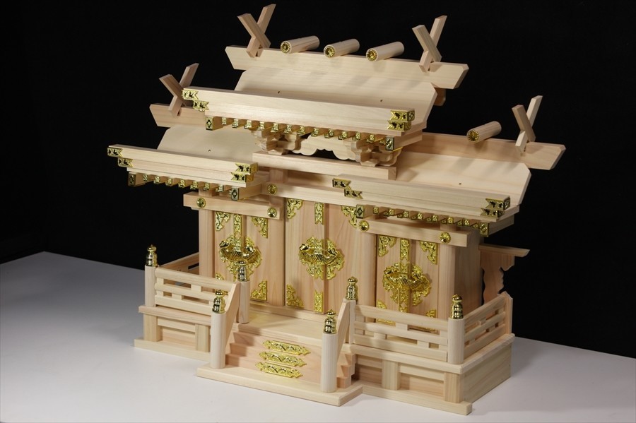 - 美しい、東濃桧■ 升組造り 屋根違い 中型 ■マス組付 ■神棚 (お社本体)高さ43cm×幅58cm×奥行き23cm