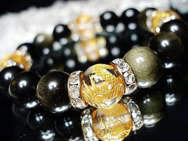 - 開運・厄除け天然石昇龍金箔手彫り水晶/ゴールドオブシディアン