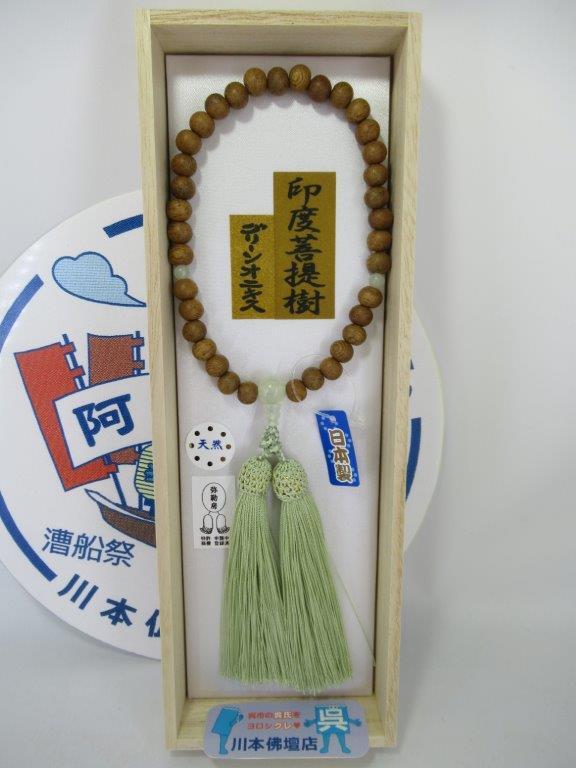 - 川本仏壇店/送料無料「印度菩提樹/グリーンオニキス仕立」山田念珠堂製 頭付弥勒房 一輪/インド産 念珠 数珠 天然石