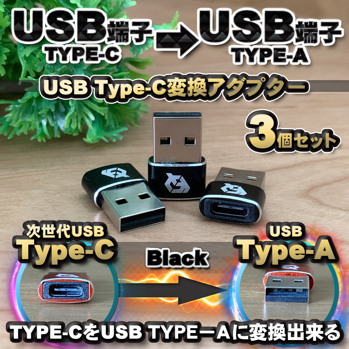 > USB Type C ケーブル → USB端子 (Type-A) に変換する アダプター x3 【ブラック】