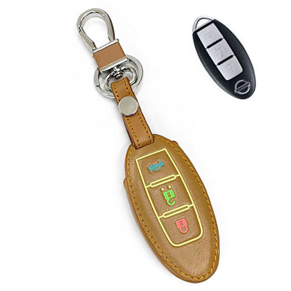 - 本革 B3仕様 蛍光 スマートキーケース 日産 茶色系 送料無料