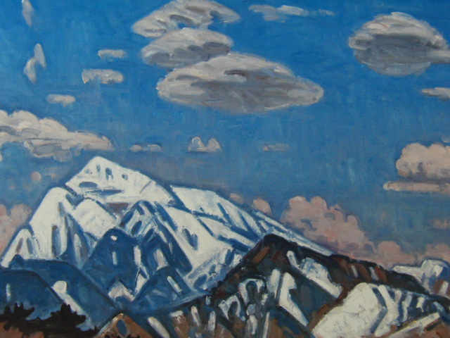 - 奥瀬英三、【雲と甲斐駒】、希少な大判額装用画集より、美品、日本人画家、新品額装付、送料込み