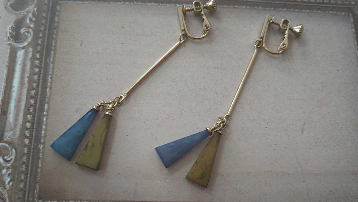 - □青・緑×ゴールドカラーバー・揺れるイヤリング□