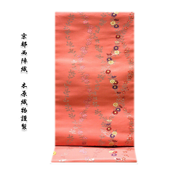 > [和楽屋] ■京都西陣織 老舗「木原織物謹製」 オシャレで煌びやかな 立涌花柄 九寸 正絹 名古屋帯■
