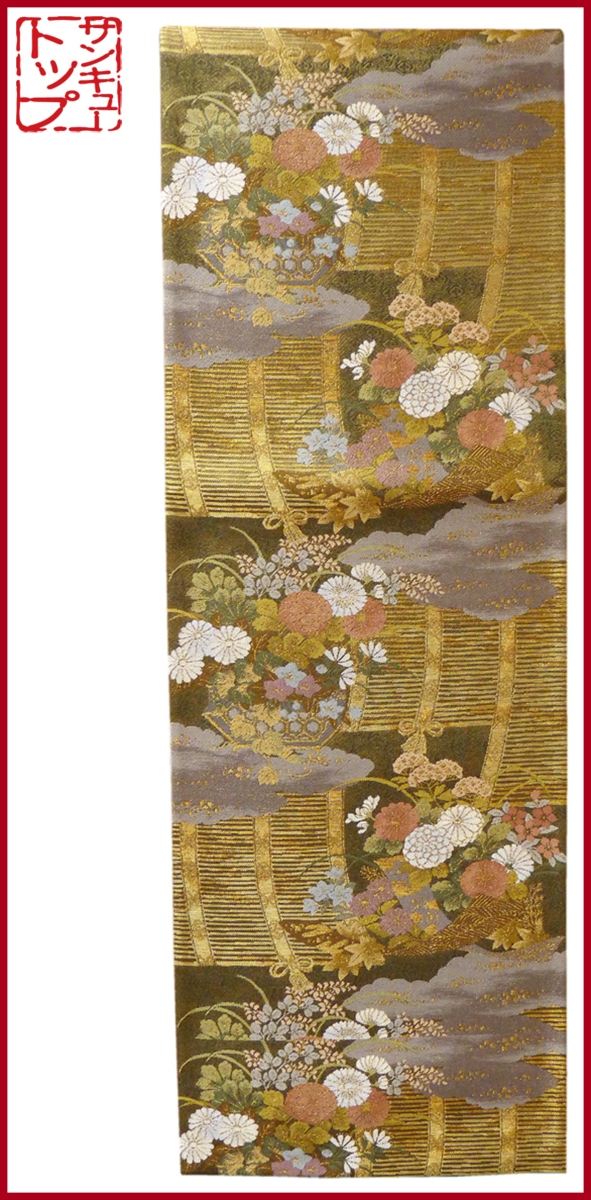 > 【店頭価格13000円の品 在庫処分 大幅値下げ】☆質:39トップ 着物館 帯 813 正絹 袋帯 菊秋草蒔絵文 中古 お慶びの席に
