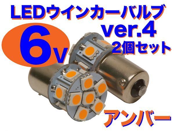 > 6V ウインカー用 LED電球 2個セット 口金サイズ15mm ver.4 アンバー(オレンジ) RD TY GT GR