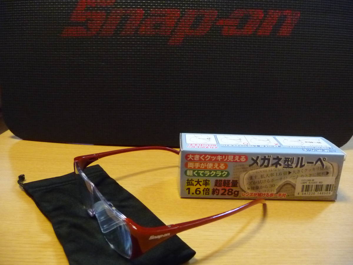 - スナップオン snap-on メガネ型 グラスルーペ 拡大鏡 老眼鏡 眼鏡 1.6倍 赤フレーム メガネの上からOK ケース付 作業 取説 伝票処理時