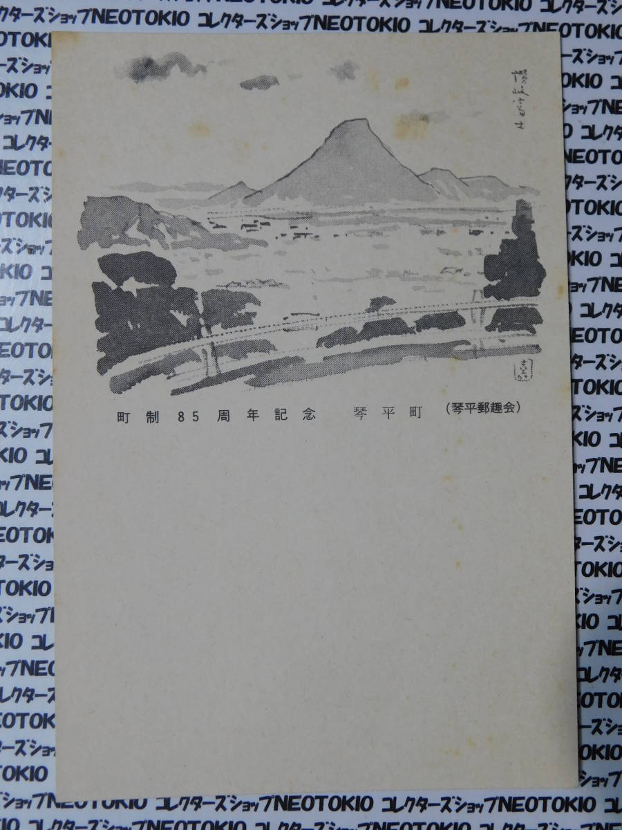 - 郵便はがき 琴平町 町制85周年記念 讃岐富士 水墨画イラスト 土器10円 未使用・EO