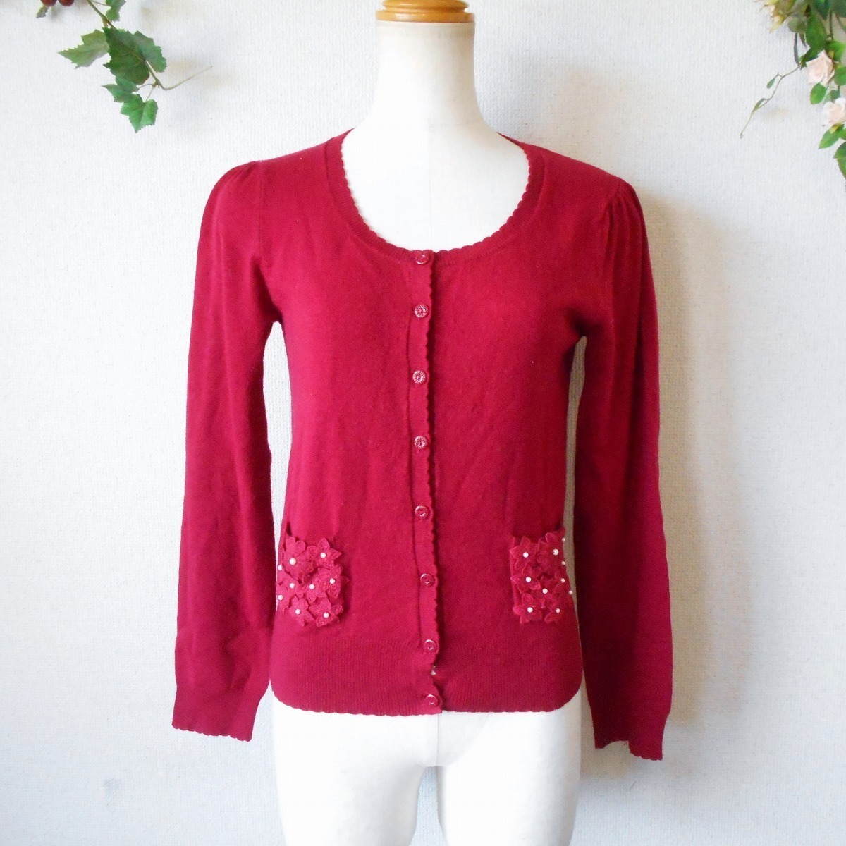 > レッセパッセ LAISSE PASSE お花 モチーフ の 可愛い 薄手 ニット カーディガン 38