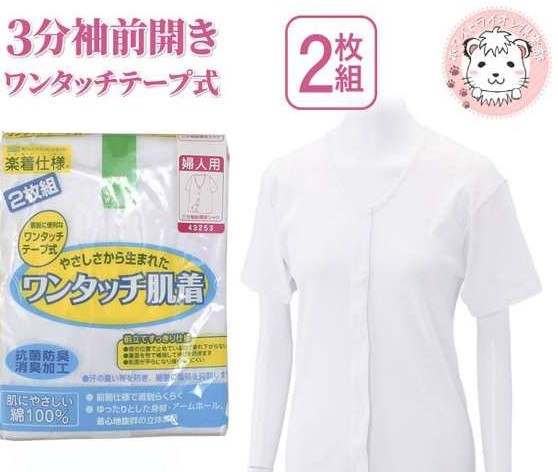 - 新品●●婦人 レディース 前開きワンタッチ 介護肌着 介護下着シャツ サイズM 2枚入り 3分袖 ピーチ2枚