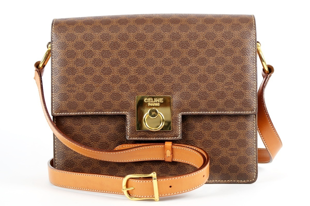 - 【超美品】CELINE セリーヌ マカダム ショルダーバッグ ガンチーニ金具 ブラウン系 ブランド鞄【KN59】