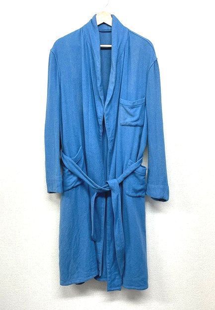 - ロングコート感覚で ビンテージ ラウンジウェア ウール ガウン ローブ ヘリンボーン ブルー サイズL [l-0128]