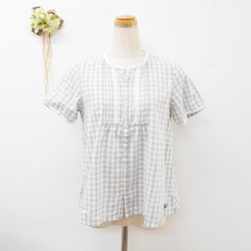 - ドラッグストアーズ DRUG STORES レディース 2 半袖 ブラウス 白 ホワイト グレー チェック レース トップス