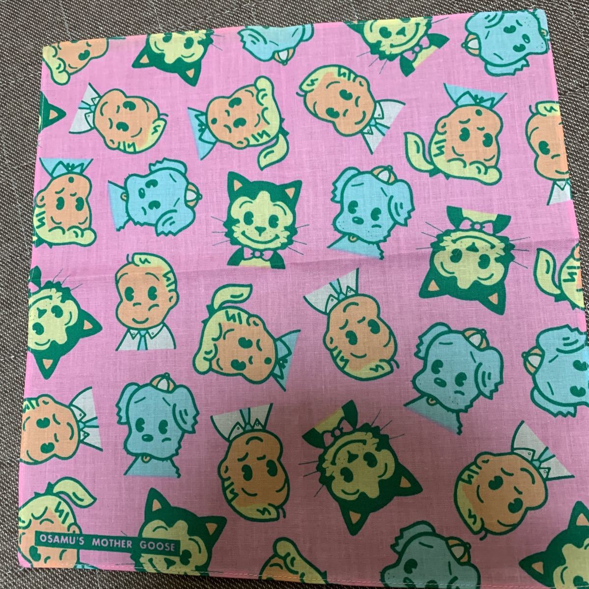 - 新品 レア オサムグッズ ハンカチ ピンク 総柄 osamu goods はらだおさむ ハラダオサム 当時物 リメイク ハンドメイド