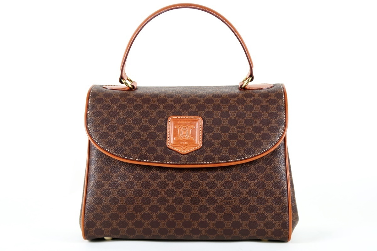 > 【超美品】CELINE セリーヌ マカダム ケリー型 ハンドバッグ 小物入れ ブランド鞄 ブラウン系【JS20】