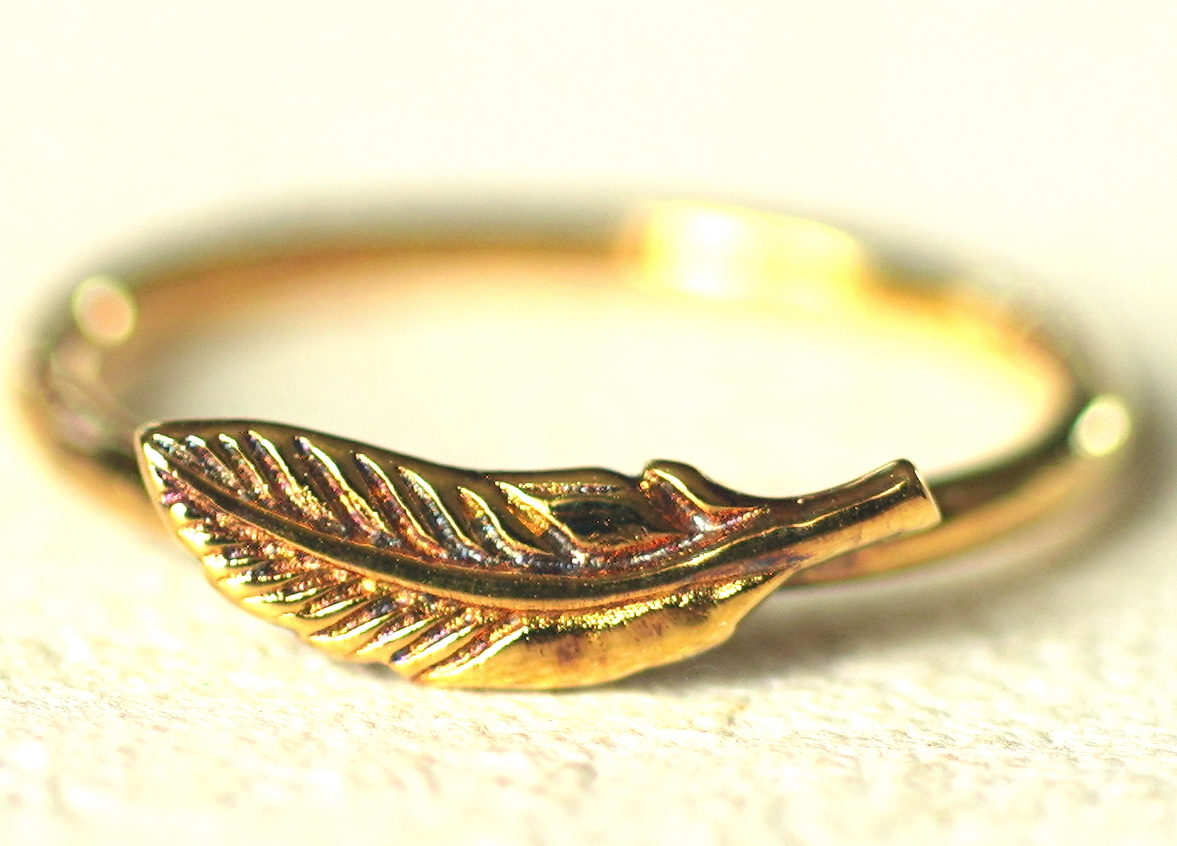 - シルバー925製 フェザー デザインリング 約11.5号 ゴールドカラー