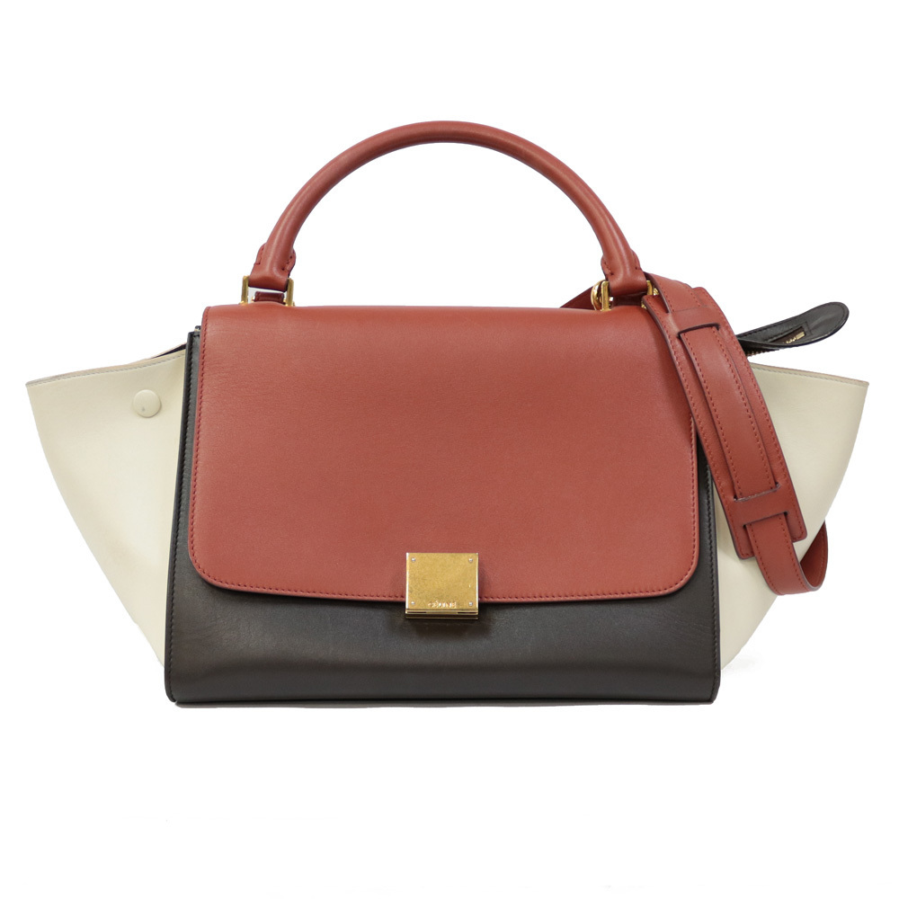 - CELINE セリーヌ ハンドバッグ トラペラーズ 2WAYバッグ ショルダーバッグ マルチカラー ブラウン 中古
