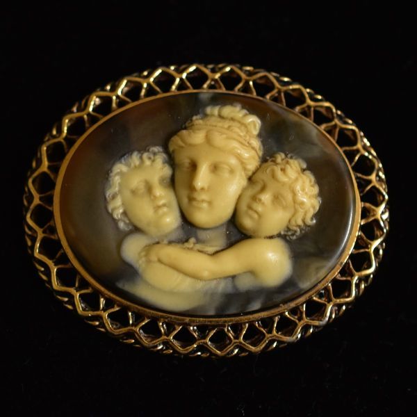 - アンティーク 樹脂製 女神アフロディテとキューピッドのカメオブローチ 20世紀初頭 本物保証