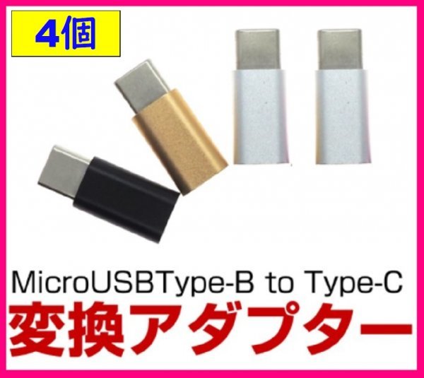 > 【送料無料:タイプC:変換 アダプター:4個】★タイプB ⇒ タイプC 変換:マイクロ USB:★充電・スマホ・タブレット:Type-C :アンドロイド