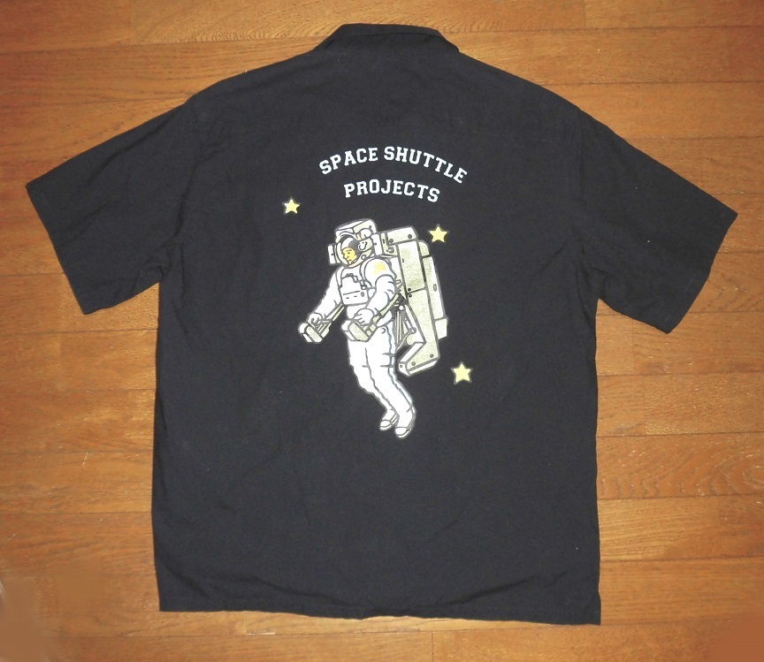 - NASA X GU ナサ ジーユー コラボ スペースシャトル 半袖 オープンカラー オーバーサイズ ボタンシャツ BLK M 使用僅 ほぼ未使用 美品