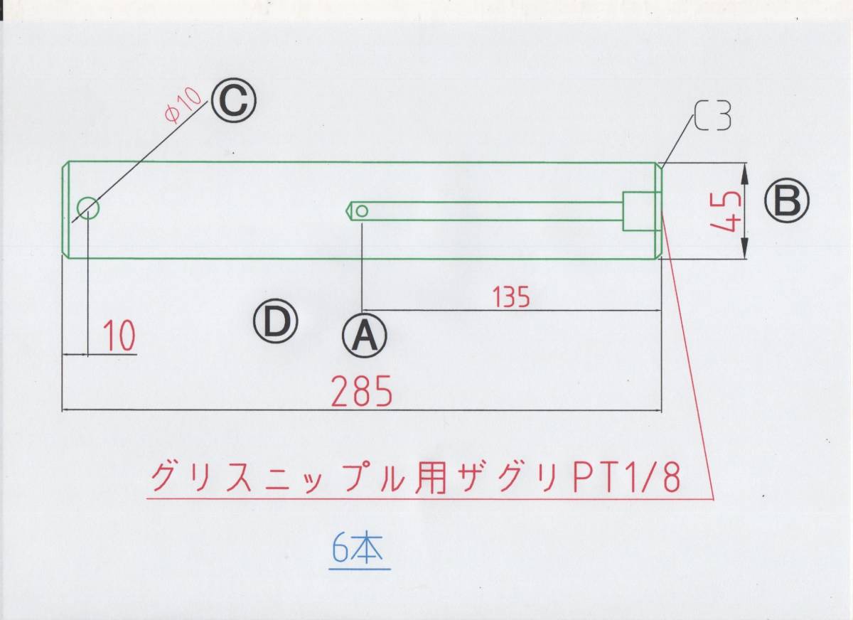 - NO 1190 Φ45用 長さ285mm グリス穴付きバケットピン 6本 1セット