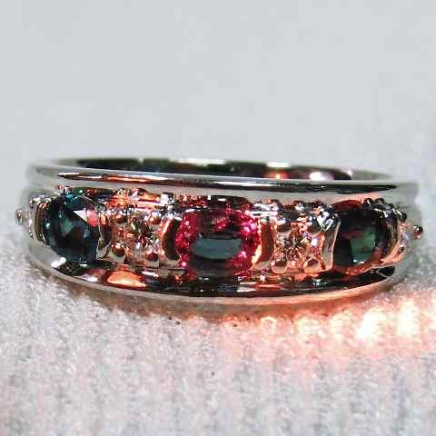 > 【値下げ交渉は質問欄より】アレキサンドライト0,61CT☆一文字デザイン★プラチナ900指輪★きれいなカラーチェンジ☆逸品リング!