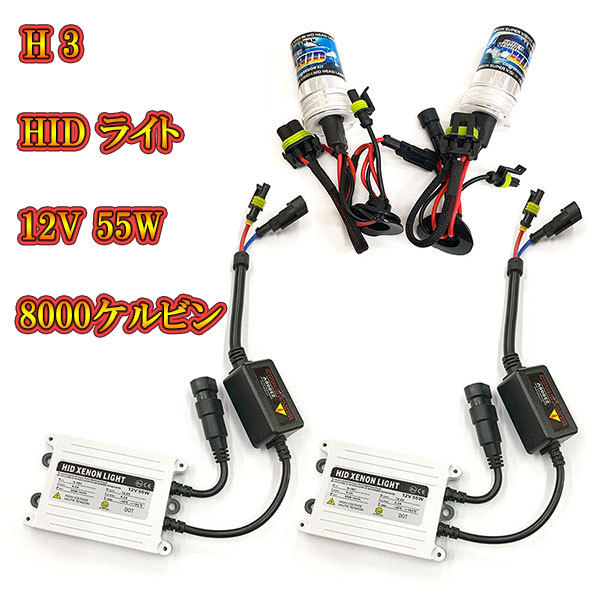 > 自動車用 HIDキット ヘッドライト HIDランプ 12V 55W 8000K H3 送料無料