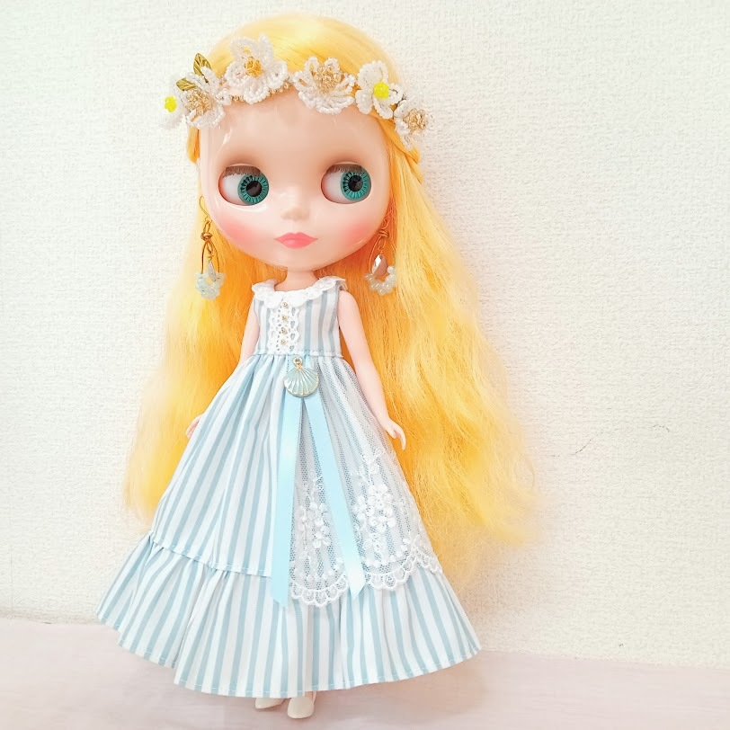 - 送料無料! ハンドメイド ネオブライス・リカちゃんの服 「マキシ丈のティアードワンピース(ストライプ)」ブライス 服 ワンピース
