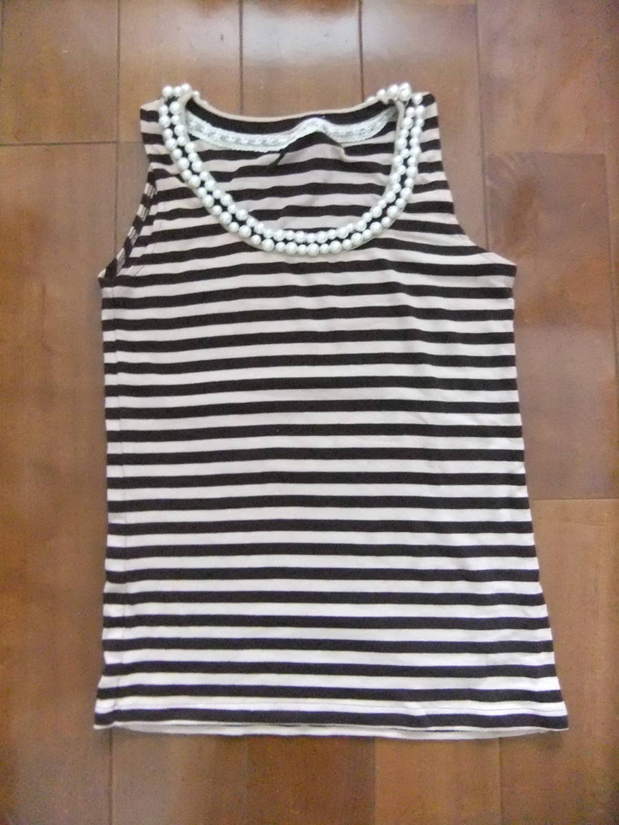 - 新品!COCO DEALのベージュ×ブラウンボーダー柄タンクトップ、フリーサイズ!