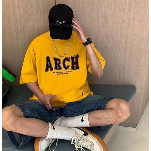 - 前面プリント 半袖Tシャツ ユニセックス イエロー Lサイズ 新品未使用