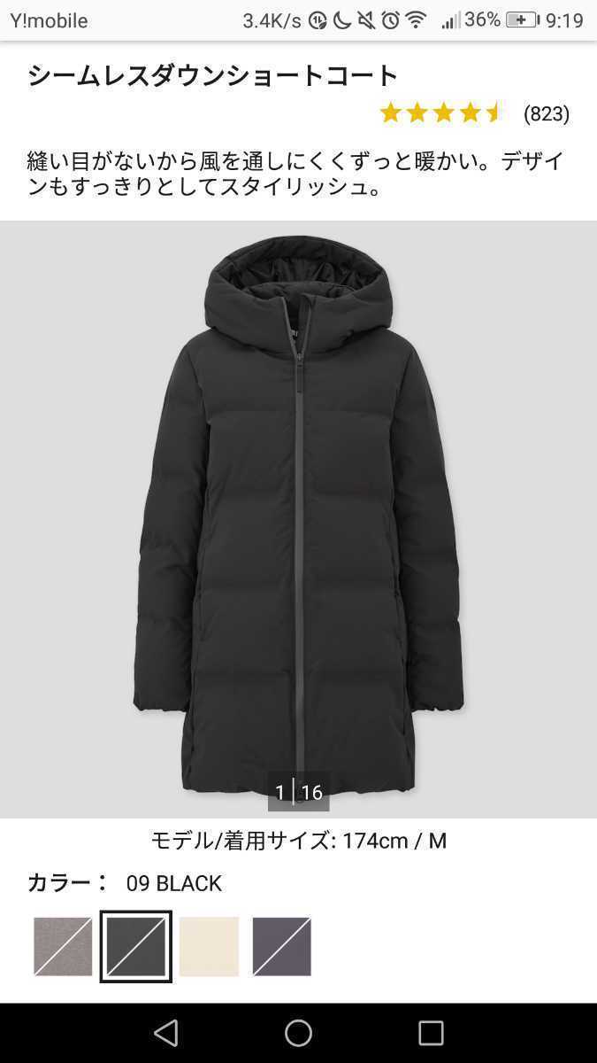 > ユニクロ WOMEN シームレスダウンショートコート Mサイズ ブラック