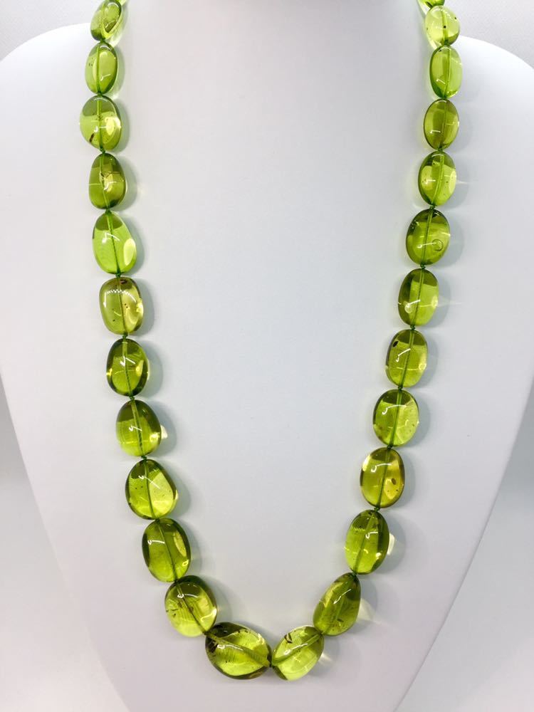 > 【新品】グリーンンバー(琥珀)ロングネックレス*リトアニア産*こはく*コハク*グラデーション*一点もの*希少*大振り*天然石