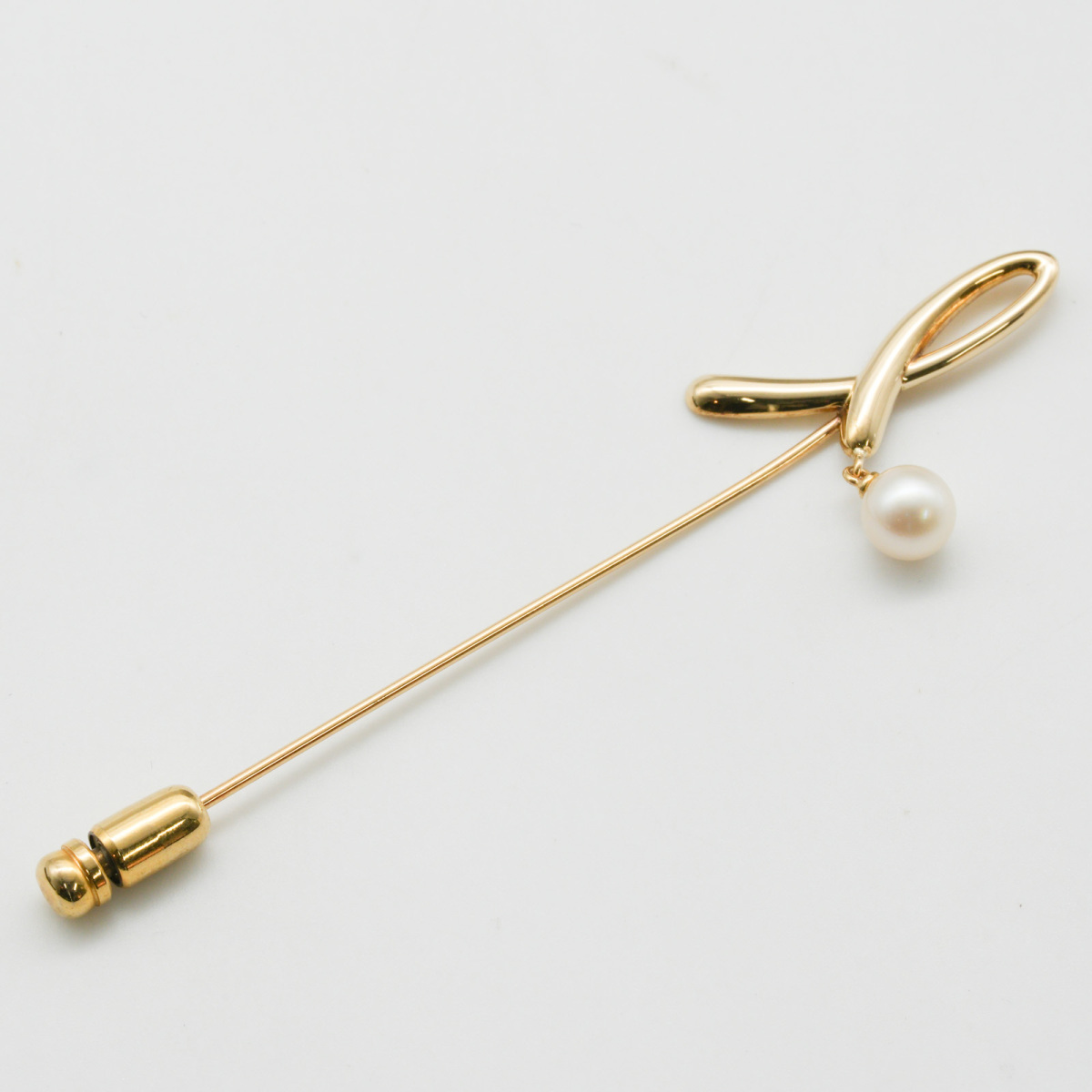- 質イコー [ミキモト] MIKIMOTO ピンブローチ パール付き 6mm珠 K18YG イエローゴールド レディース 中古 美品