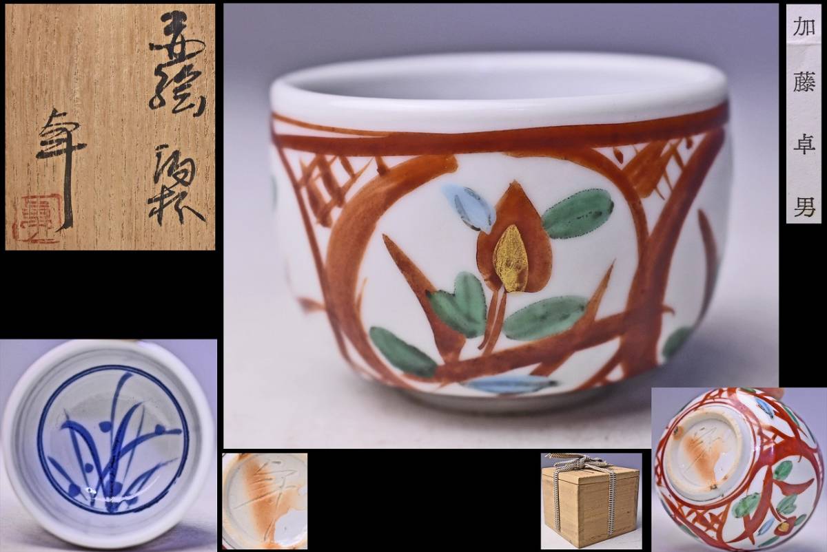 - 加藤卓男 ★ 赤絵ぐい呑 ★ 共箱栞 ★ 人間国宝 ★ 6代 加藤幸兵衛 ★ 雅な逸品 ★