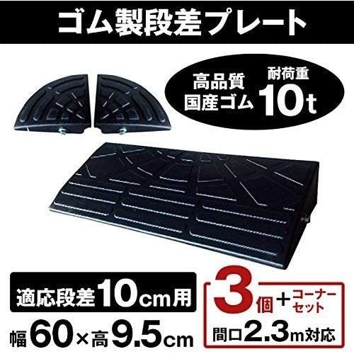 - ゴム製段差プレート DANSAのぼるくん 段差10cm用スタンダードタイプ 間口2.3m対応 お得な3個+両コーナーセット 10-60-3SC