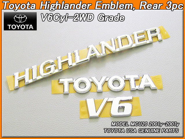 - クルーガーMCU20/TOYOTA/トヨタHighlander純正USエンブレムセット-リア3点(3.0L.V6-2WD)/USDM北米仕様KLUGERハイランダーUSAバックドア周り