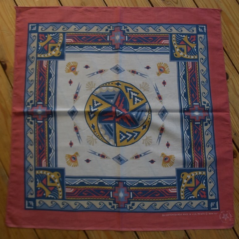 - 送料無料 Vintage ネイティブ バンダナ Made in USA アメカジ サンダーバード ピンク アメリカ仕入れ ハンカチ 雑貨 ヴィンテージ A0285
