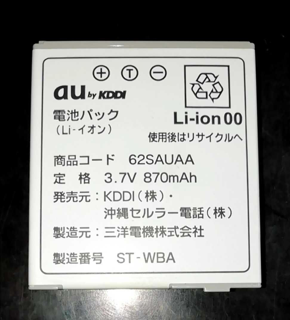 - 【中古】au純正62SAUAA電池パックバッテリー【充電確認済】対応機種(参考)W62SA
