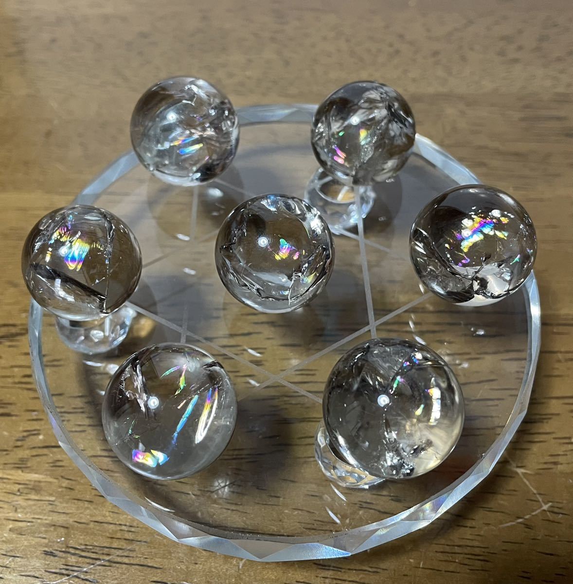 - 七星陣 アイリス 虹入 スモーキークォーツ 天然石 置物インテリア 煙水晶 レインボー 小物ファッション お守 魔除 幸運 ラッキー 浄化