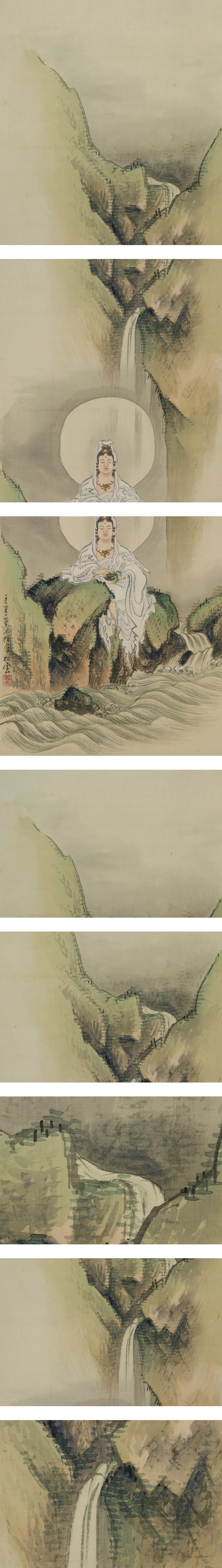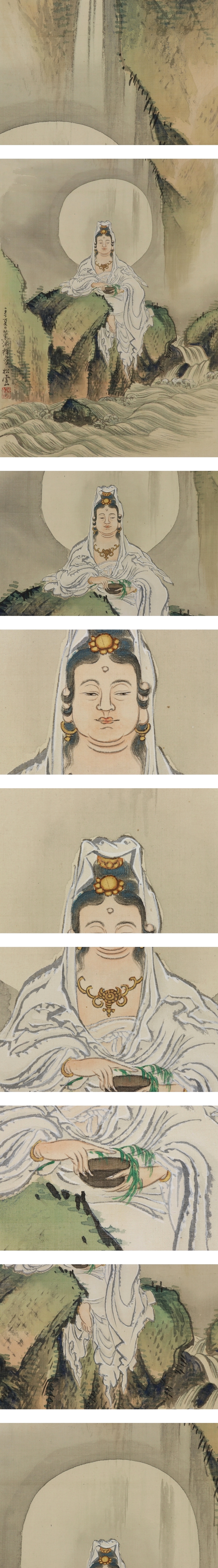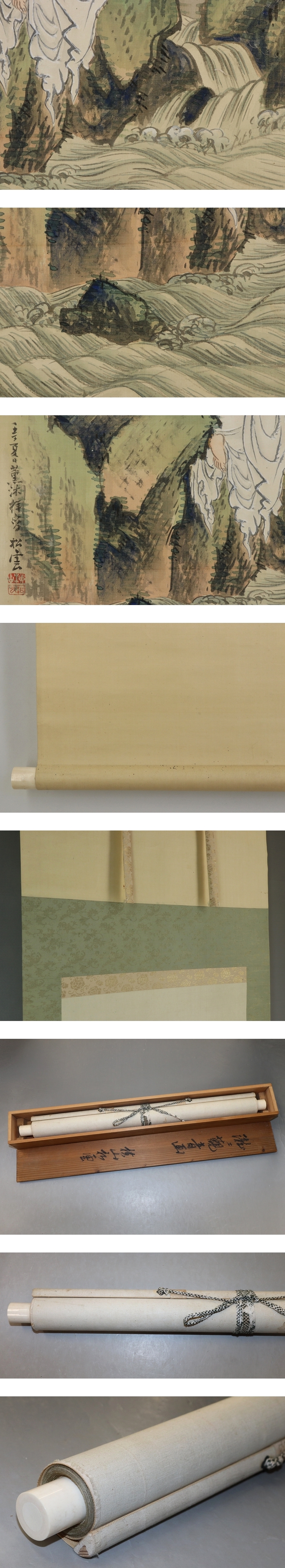 - 【真作】横山松雲【岩上観音】◆絹本◆合箱◆掛軸 u04119